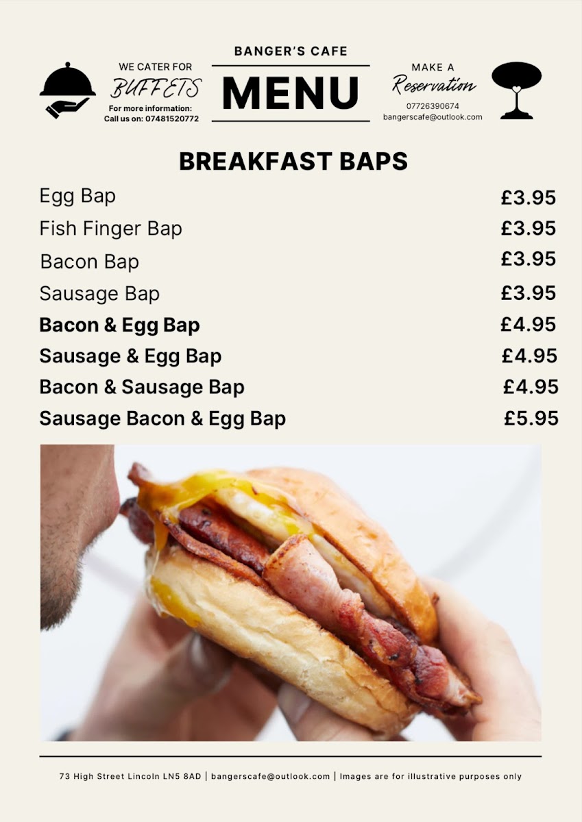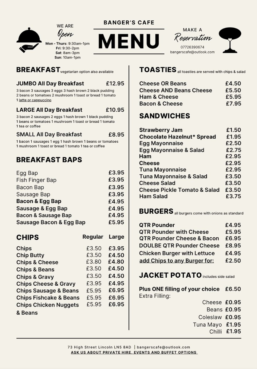 Welcome to Banger's Cafe, a beacon of comfort on Lincoln's bustling High Street. Here, the menu delights with an array of hearty options perfect for breakfast and lunch lovers alike.